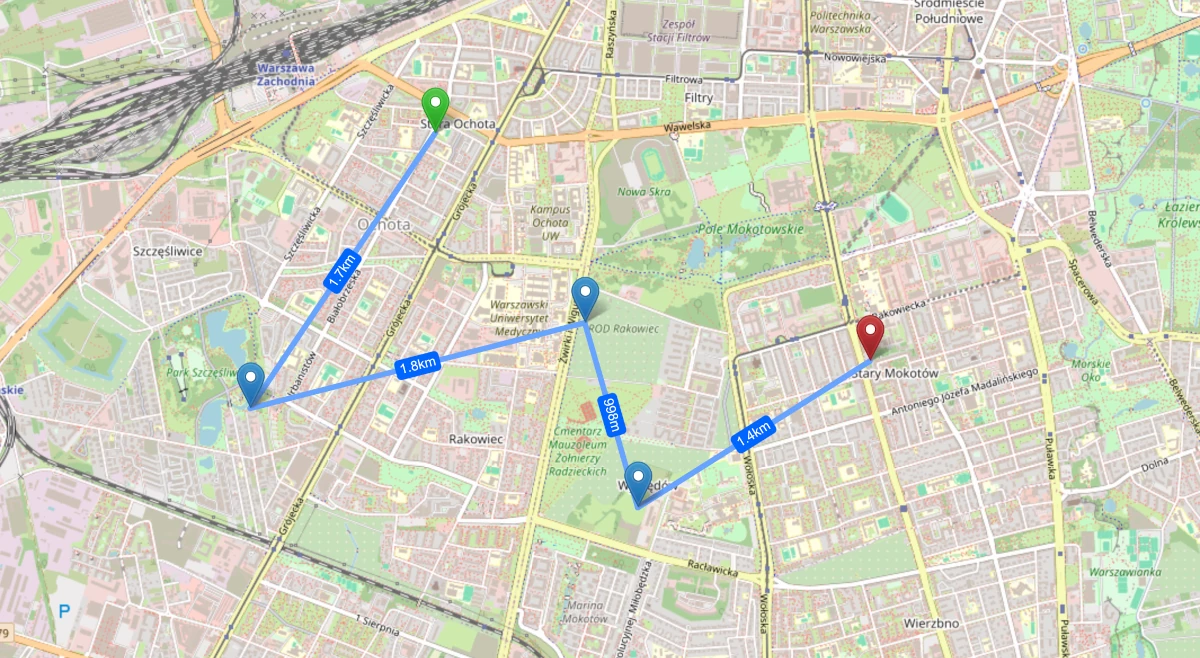 OpenStreetMap-NG now features a distance measurement tool! You can quickly measure segment distances as well as total distances in straight lines. Navigation distance summary had already been available before.